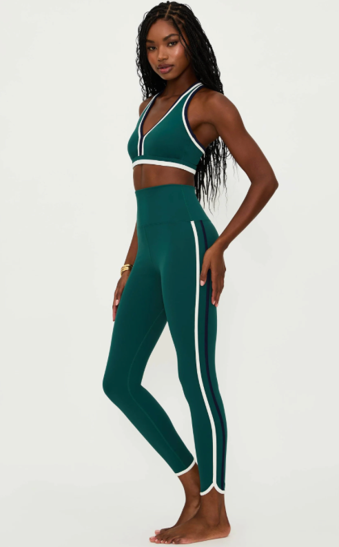 Introducing our new Matte Core Fabric! This fabric has a super soft feel, brushed finishing, moisture-wicking properties, and excellent stretch and recovery. It's sure to be your new go-to active favorite. It's featured in our new Nella Legging, a high-waisted 7/8 legging with the perfect amount of compression and fun color block binding down the sides. Pair with the matching Ida Top in Pine Green Colorblock for the perfect fall workout set.