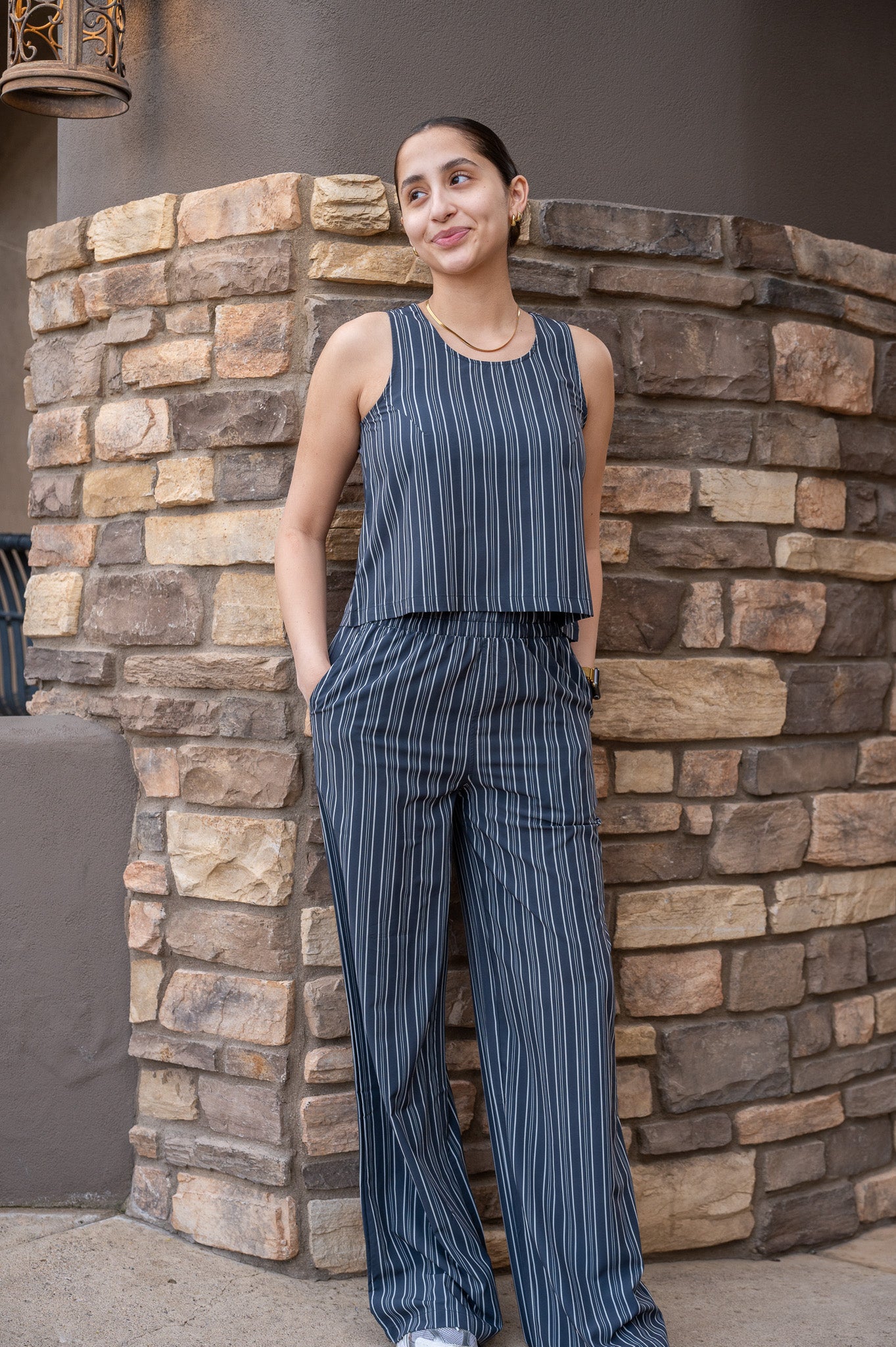 Light, breezy, and effortlessly cool. With a cropped, slightly boxy silhouette and flowy stretch-woven fabric, this piece delivers breathable comfort that feels weightless on the body. Perfect for layering or wearing solo, this is the tank that keeps you cool through every workout and beyond.